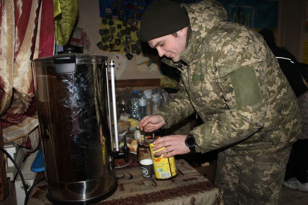 – Це така потрібна річ! Ну просто незамінна! Привезли в подарунок діти-волонтери із Олександрополя. Вони назбирали самі грошей та придбали такий коштовний подарунок. Саме почали вимикати світло. Страви ми готували на вогнищі, там же й компот варили. Але ж без гарячого чаю та кави ніяк! Військові окрім їжі, хотіли й гарячого напою. Чайник майже не вимикався. І тут раптом перебої з електропостачанням! А зараз ми цього не боїмося. Вода в термосі гаряча завжди!