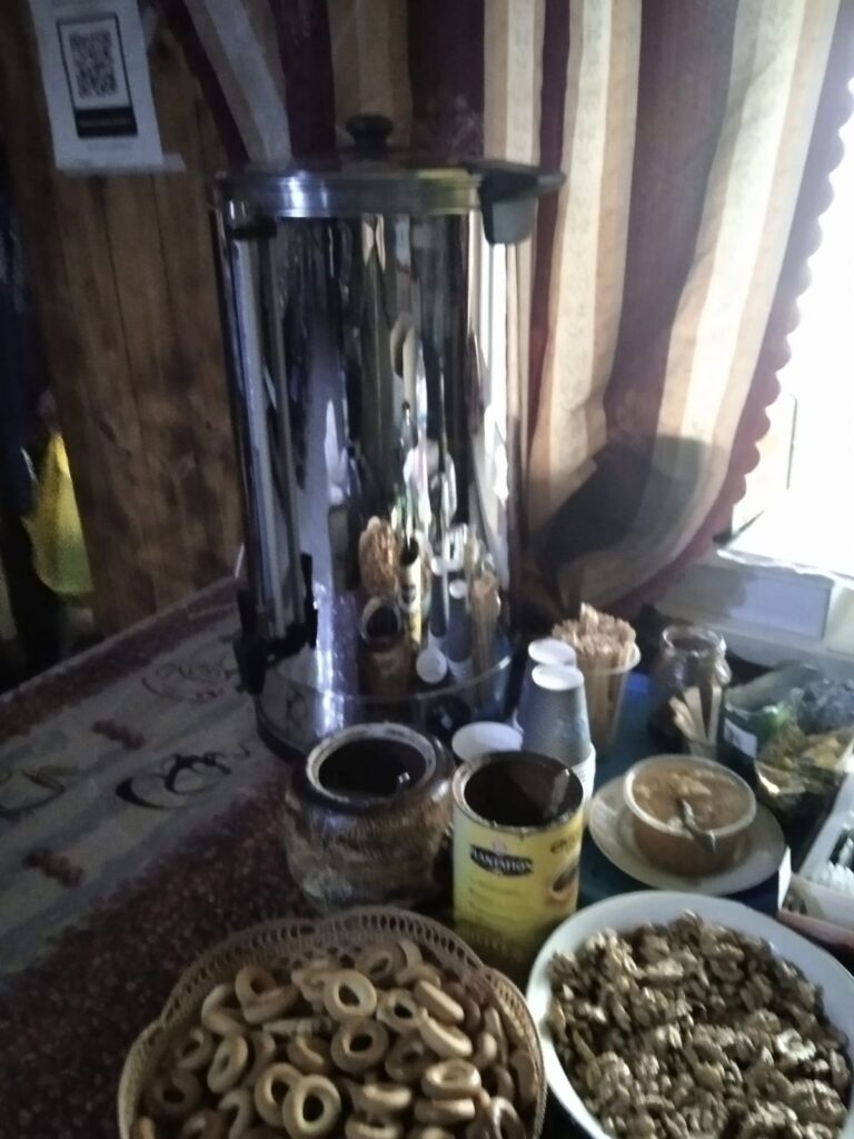 Кожен може зайти і приготувати собі чай чи каву. Тут кава розчинна, кава в стіках, чай, цукор, печиво. Раніше тут стояв електрочайник, а зараз – термопот на 28 л.
