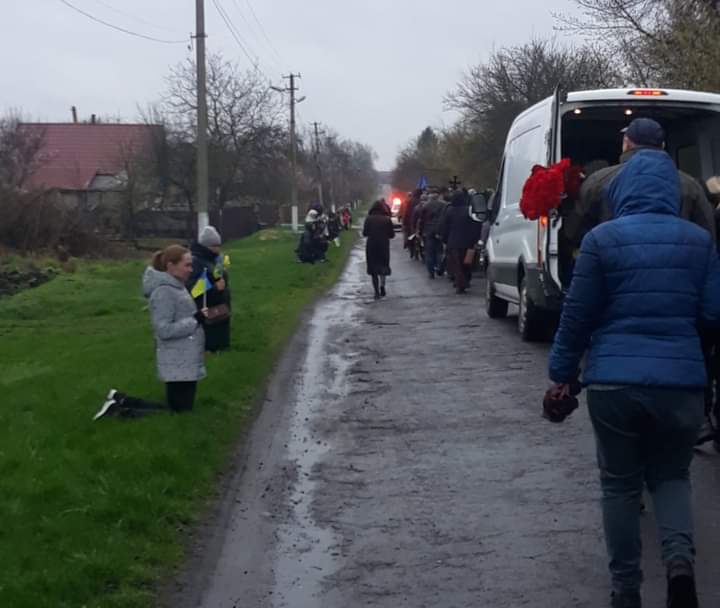 У скорботі схилили голови і опускалися на коліна усі, хто чув і бачив наближення траурної процесії – автомобіль з тілом Героя і багато автомобілів за ним.