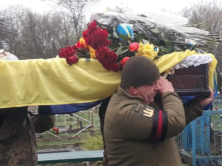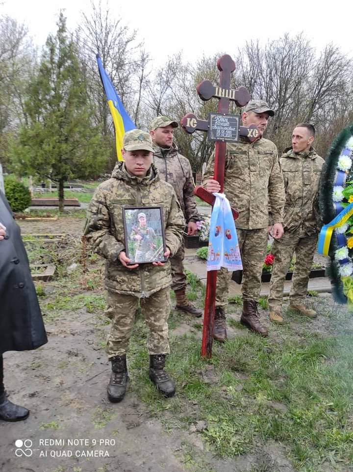 Мовчазні військові схилили голови. Приїхали попрощатися побратими, рано виїхавши із бойових позицій лише на декілька годин. Не може стримати сліз молодий командир: нелегка ноша випала йому приїздити на поховання своїх підлеглих й дивитися в очі рідним.