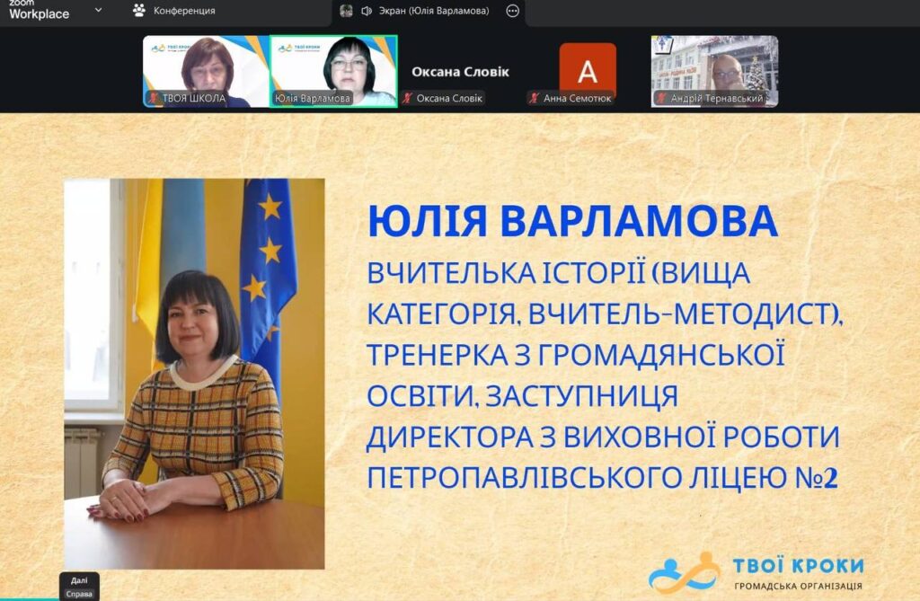 Вчителька історії, заступниця директора з виховної роботи Петропавлівського ліцею №2 Юлія Варламова провела он-лайн вебінар для освітян України.