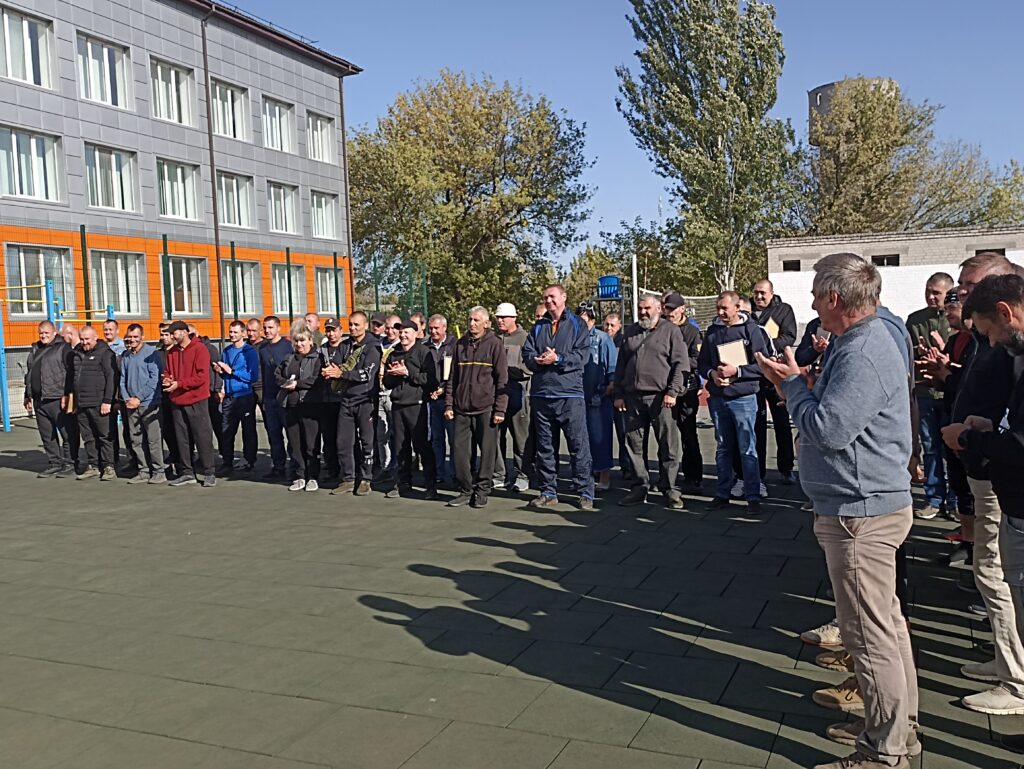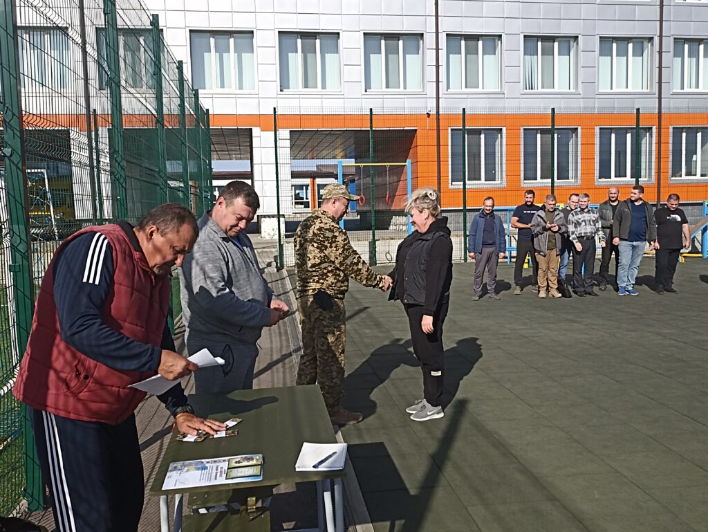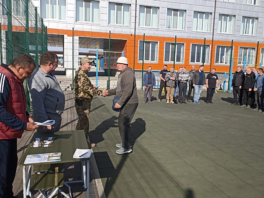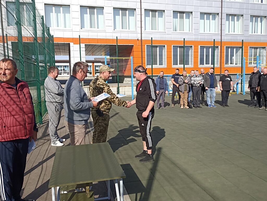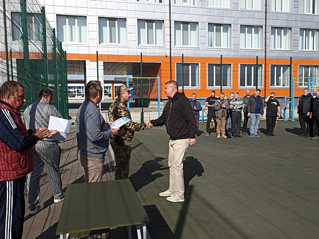 Спочатку всі військовослужбовці трьох підрозділів вишикувались  на окремому майданчику, що біля шкільного стадіону – відбулася урочиста церемонія нагородження воїнів грамотами, відомчими відзнаками та вручення погонів на присвоєння чергового звання : старший солдат, сержант, старший сержант. В честь кожного військовослужбовця, який отримував нагороду, лунали дружні оплески.