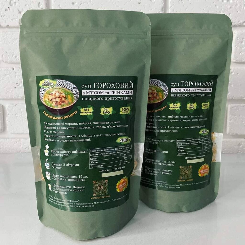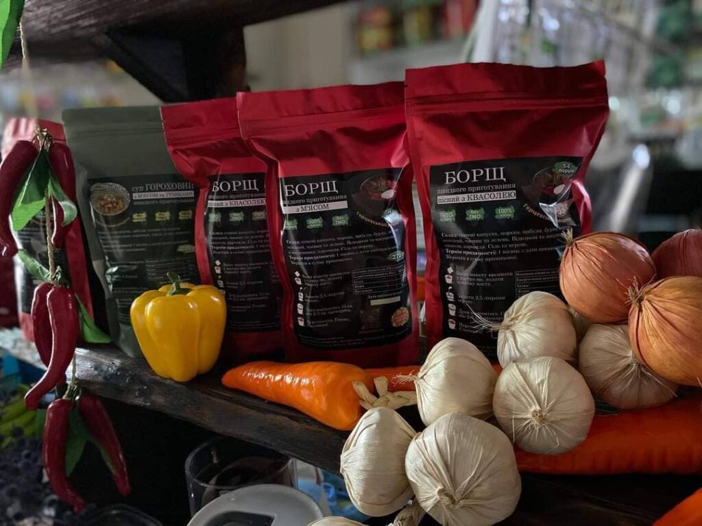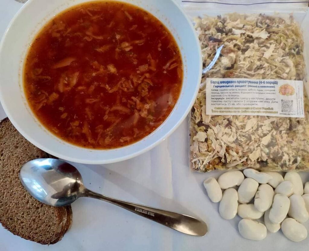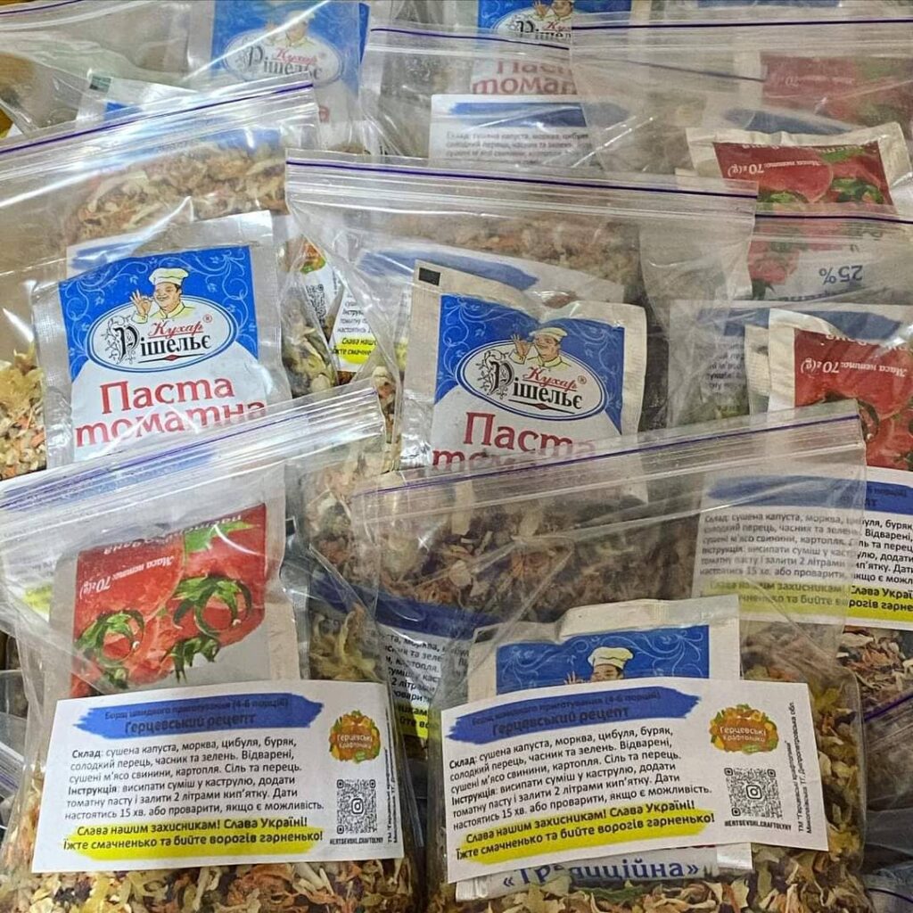Готові пакунки власники «Герцевські крафтолики» відправляють на фронт та повертали тим, хто привозив харчі, готовими пакунками сухої суміші борщу та супу.