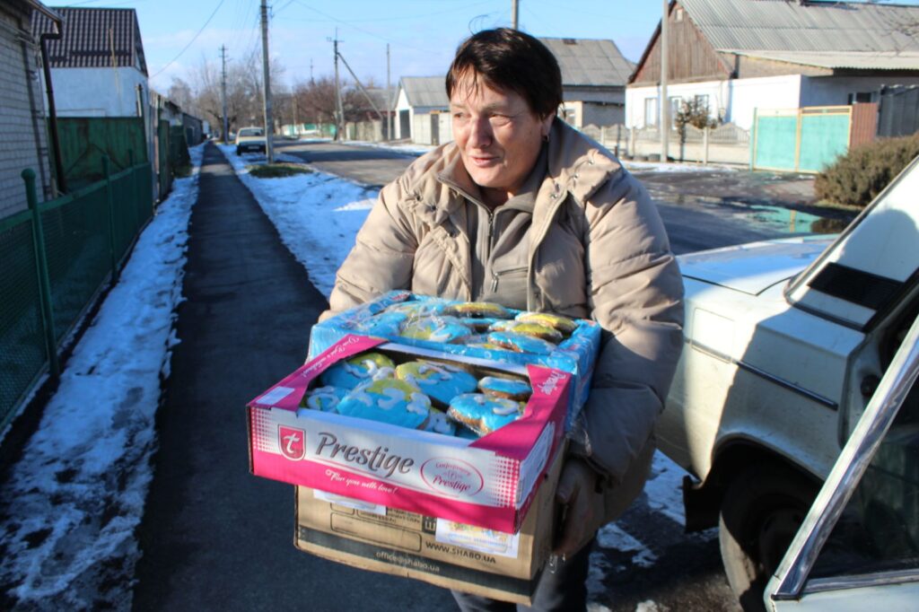 Продуктові передачі – салати «Олів’є», «Мімоза», вінегрет, крабовий салат, млинці із м’ясом, млинці із сиром, бутерброди із салом, бутерброди із ковбасою, випічка – все дбайливо спакували та завантажили в автомобіль до Людмили Приходько. Готові страви доставили до волонтерок двох Наталь в Петропавлівку. А наступного дня дівчата все відвезуть на передову на Донецький напрям.