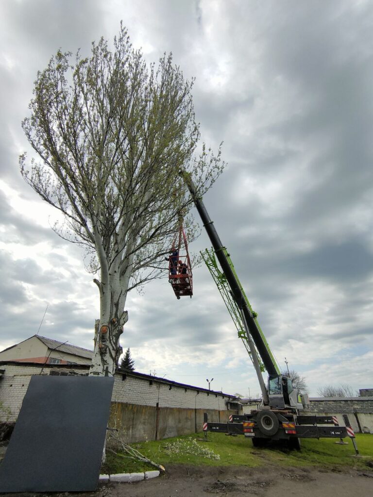 Крім того, дерева-велетні несуть загрозу і відвідувачам медзакладу. Всі роботи виконуються безкоштовно представниками служби ДСНС, які мають спеціальну техніку та досвід висотних робіт. На всі заходи із бюджету громади жодної копійки не витрачено. Для громади це суттєве заощадження, яке допоможе реалізувати інші потреби. Адже вартість таких робіт на ринку пропозицій – кілька тисяч гривень. Кронувати дерева продовжують і на цьому тижні.