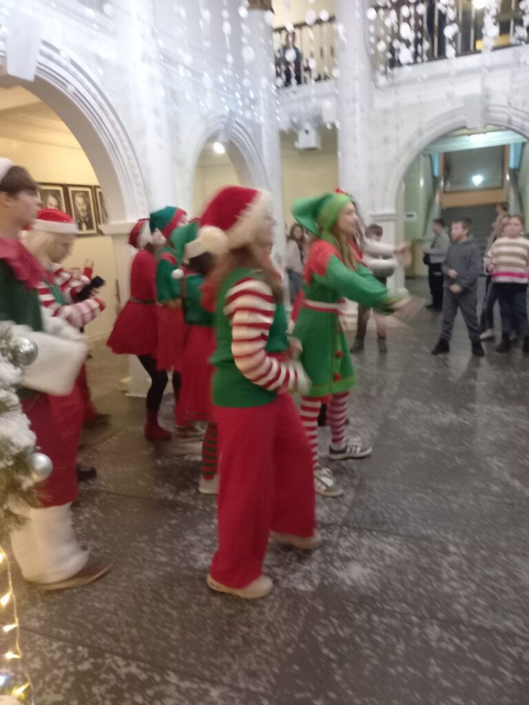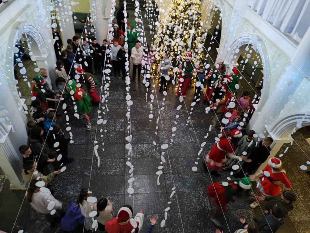 – Нас зустрічали вже на вході до храму мистецтва і культури, – розповідає педагог-організатор Петропавлівського ліцею №2 Алла Дронова. З автобуса діти відразу ж потрапили у казку. Святково прикрашена зала вестибюлю, вся у білих пухнастих «сніжинках», ошатна пишна ялинка і казкові персонажі, які  відразу ж захопили загальну увагу і залучили всіх дітей до своєї гри.