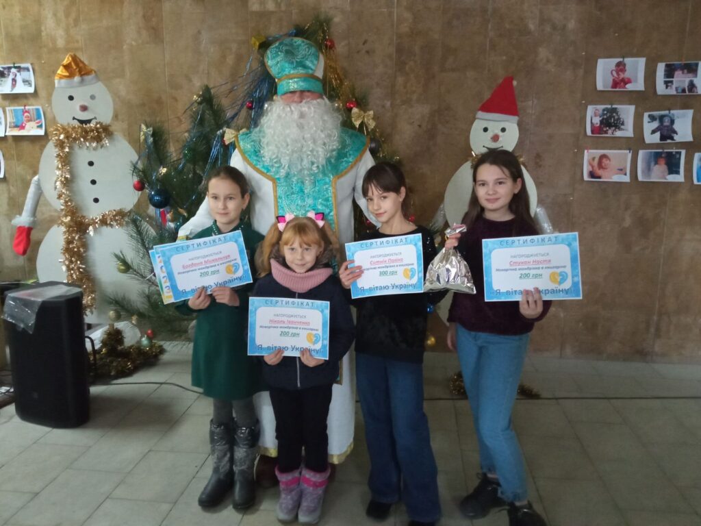 На п’ятірку переможців чекав сюрприз. Святий Миколай подарував дітям Новорічну мандрівку в книжкову крамницю. Переможці отримали сертифікати на придбання книжок на визначену суму. Найбільшу кількість вподобань (більше 500) отримали Ситнік Поліна та Міхєєв Микита. Їм подарував Миколай сертифікати на 300 грн. Ще троє переможців – Михальчук Богдана, Іванченко Ніколь та Стукан Анастасія отримали сертифікати на 200 грн.