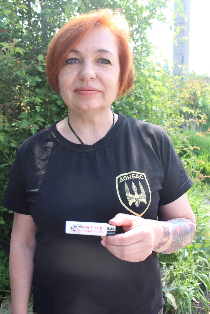 Олена Зінченко з міста Краматорська. Служить солдатом-майстром відділення зв’язку взводу бойового забезпечення «Донбас». Коли до батальйону завітали волонтери Петропавлівки, жінка розповіла їм про щоденні реалії на війні.