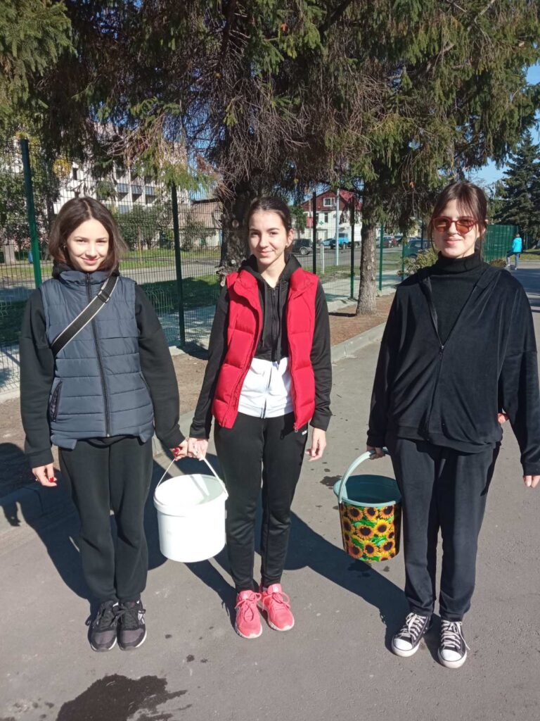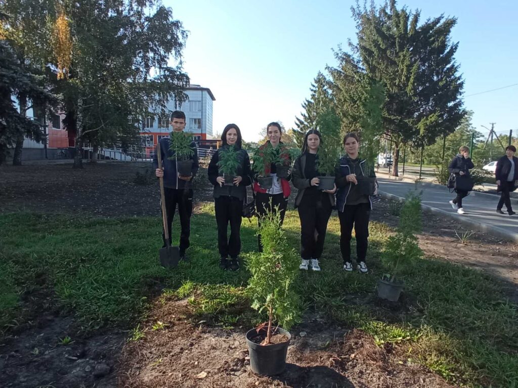 – Сьогодні ми проводимо екологічну акцію, яку приурочуємо майбутній Перемозі, – говорить далі Ольга Іванівна. – Висаджуємо перед навчальним закладом більше двадцяти саджанців декоративних рослин – ялівцю і туї, а також цибулинки тюльпанів. Цією акцією ми єднаємо покоління – учні 11  класів облаштовують алею разом з першокласниками та їхніми батьками.