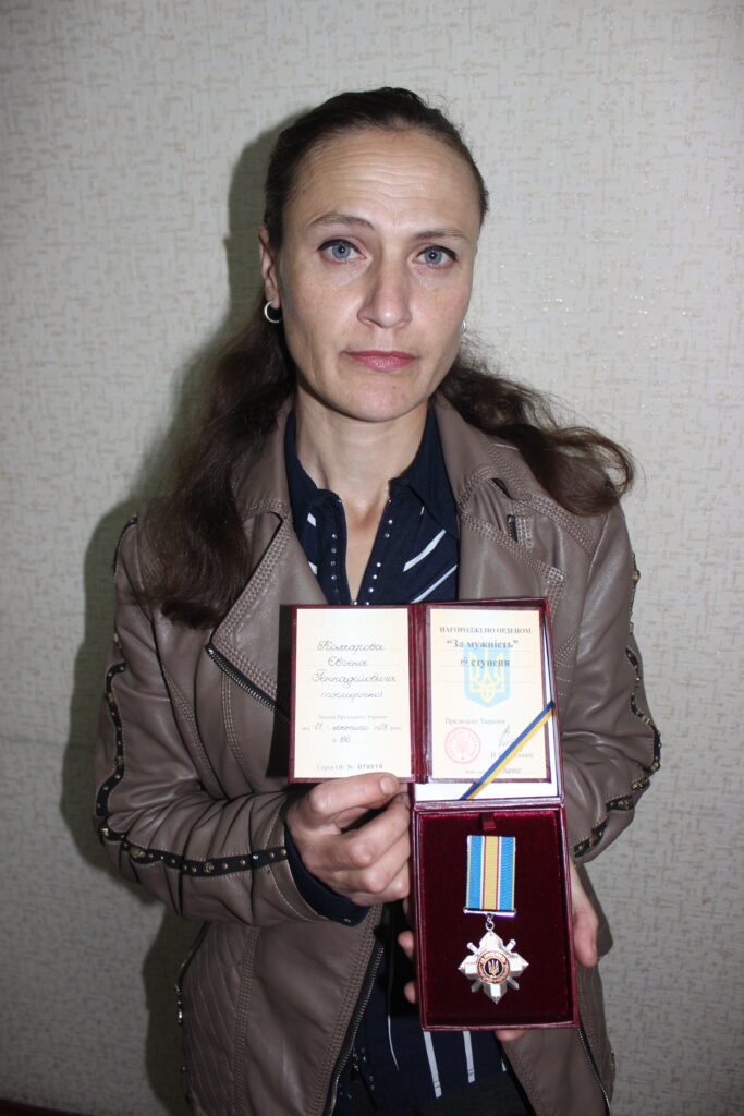 Високу нагороду отримала дружина загиблого Героя. Орден вручав начальник другого відділення Синельниківського РТЦК Олександр Чумак.