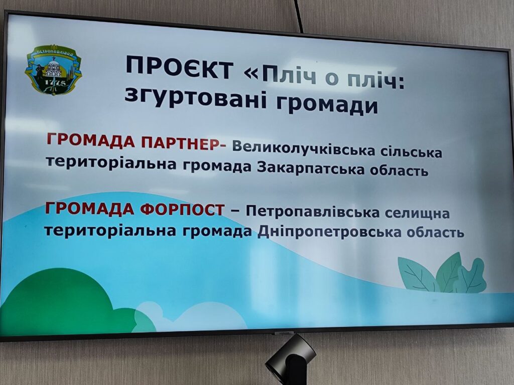 26 березня в Петропавлівській громаді відбулася зустріч делегації представників Великолучківської громади Закарпатської області, в рамках реалізації другого етапу національного проєкту «Пліч-о-пліч: Згуртовані громади».