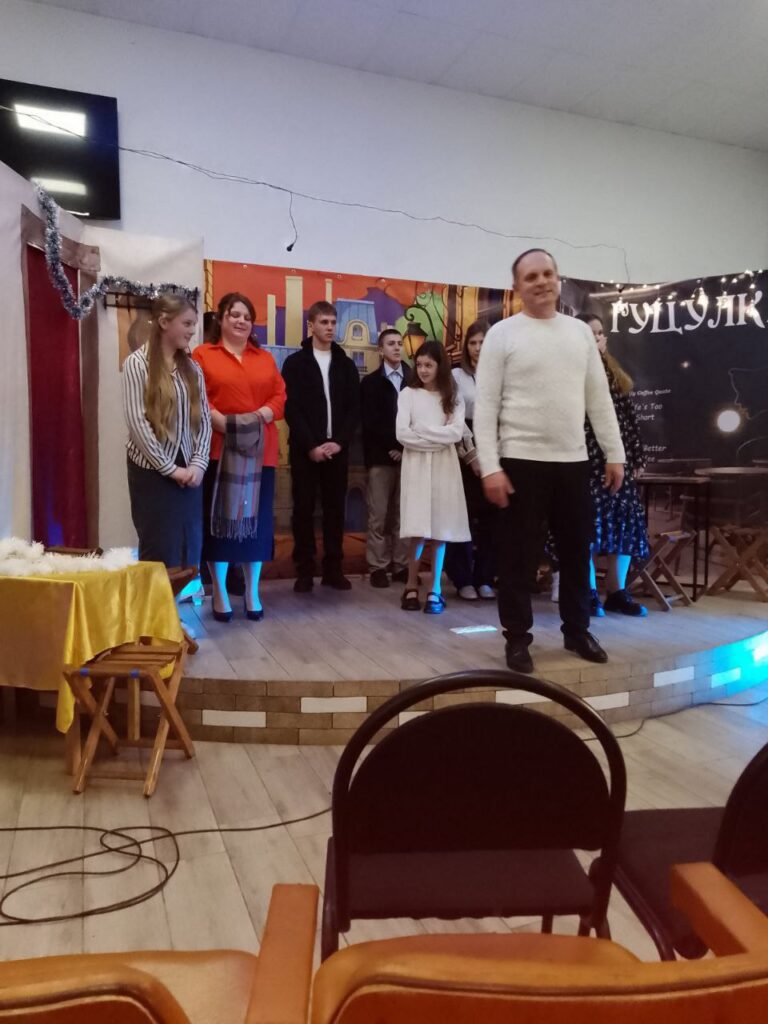 Вітаючи гостей із Різдвом Христовим і Новим роком, пастор церкви «Нове життя» Валентин Моісеєнко у своєму виступі подякував кожному із присутніх за небайдужість, велике серце тим, кому не все одно, що відбувається в Україні. Тим, хто любить свою землю і свою Батьківщину і хто своєю наполегливою працею допомагає боронити Україну. Свято для прихожан, волонтерів та їх сімей продовжилося показом життєвої та повчальної вистави «Помста». Цю виставу показали глядачам артисти Солонянської громади. Пастор церкви «Благодать» цієї громади Володимир Герасимчук радо привітав зі святами усіх присутніх. Пастор разом зі своєю сім’єю і делегацією прихожан, артистами стали бажаними гостями на святі.