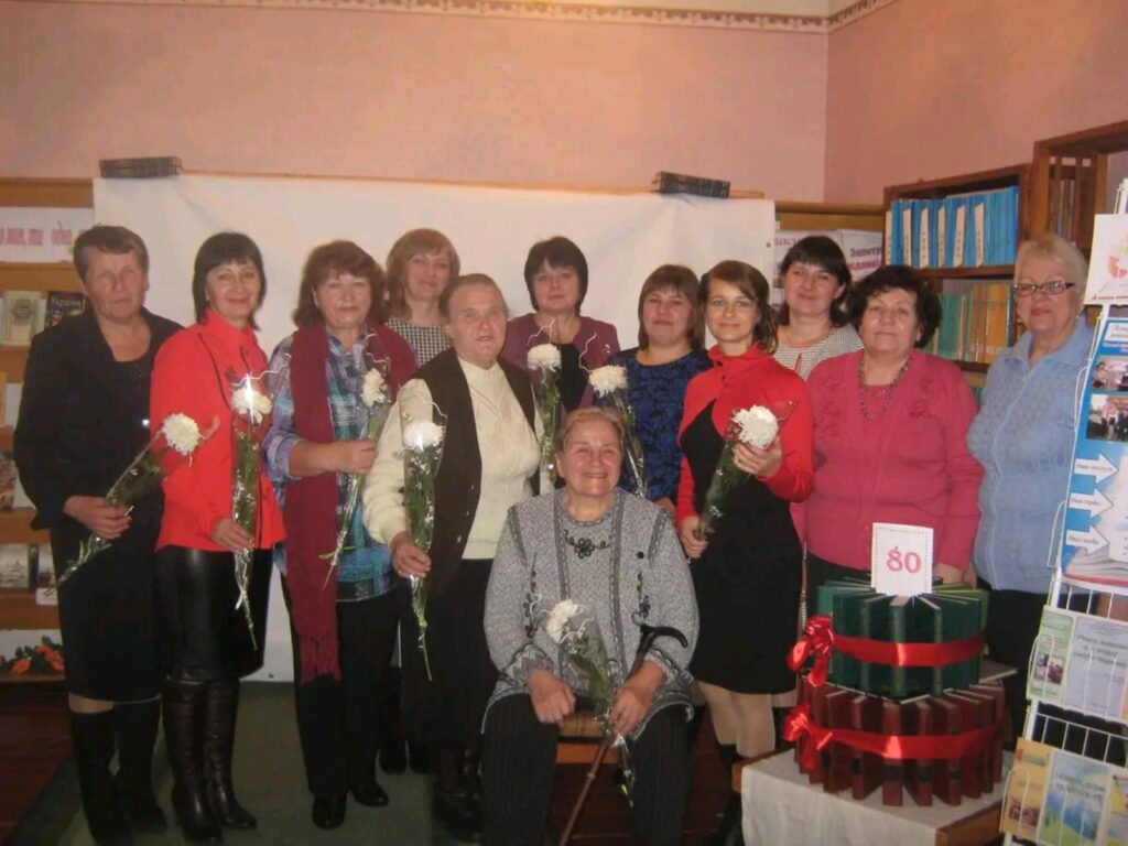 Сьогодні ми хочемо привітати та вшанувати й тих, хто присвятив бібліотечній справі усе своє життя, хто багато років тому переступив поріг бібліотеки і залишив назавжди в ній своє серце, для кого бібліотечна справа стала покликанням. Це наші ветерани, які вже перебувають на заслуженому відпочинку, але свого часу доклали багато зусиль до розвитку бібліотеки – В.В. Ляхімець, О.А. Бугай, Л.К. Земляна, Г.Г. Павлова, С.П. Рябченко, В.Н. Коробська, Т.В. Опанасенко, Н.О. Застава, Л.М. Тюря. Із пошаною згадуємо Козинець Д.М., Сахно Л.П.