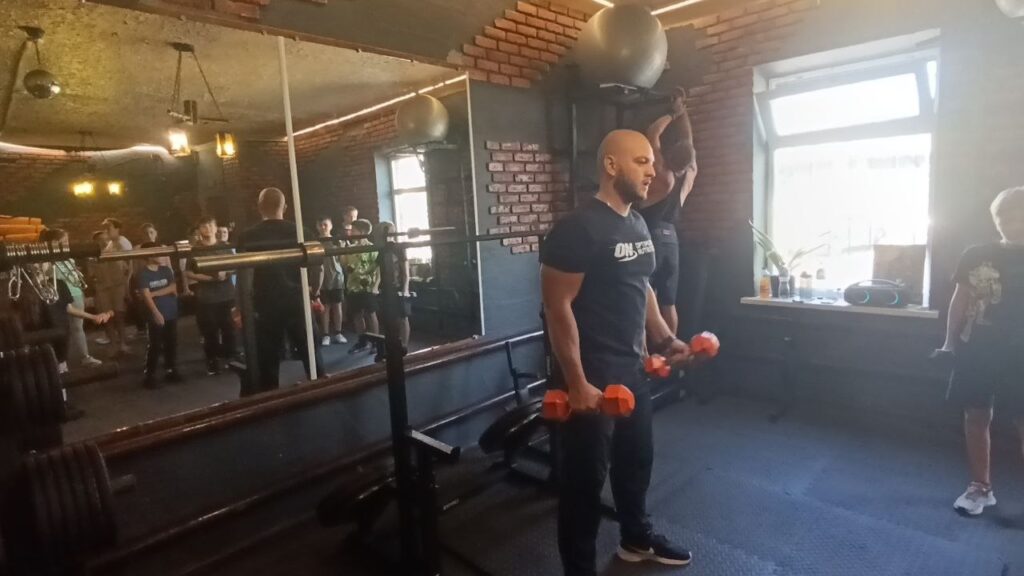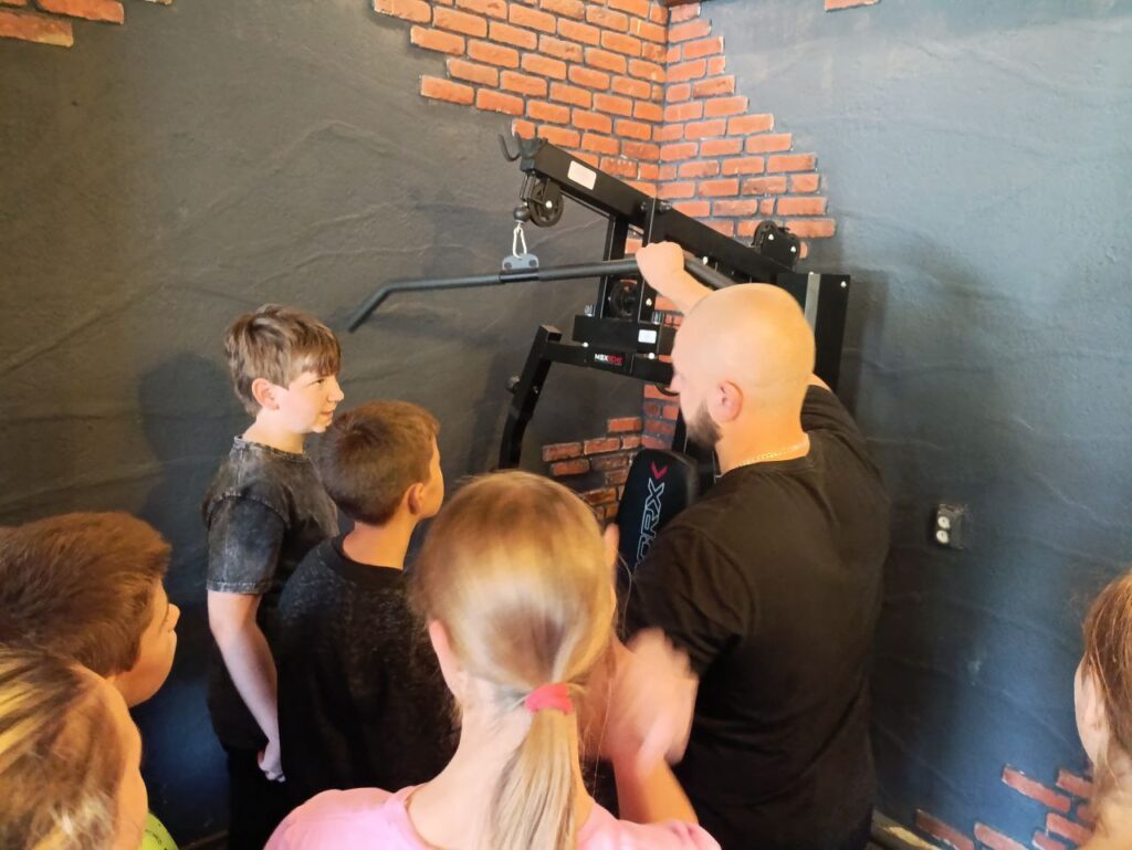 Максим Пономаренко не тільки розповів школярам про свою справу, але й влаштував невеличку вікторину, де діти відповіли на численні запитання. Що стосувались і режиму налагодженого харчування, і процесу занять, і професійної екіпіровки спортсменів, які займаються пауерліфтингом. «Розібрали» кожен елемент спортивного одягу, який коштує, до речі, дорого, але призначений для захисту від травмування. Кожен учень під наглядом і керівництвом тренера спробували на собі по черзі потренуватись на багатофункціональному тренажері. А всі разом діти виконали вправи з гантелями.